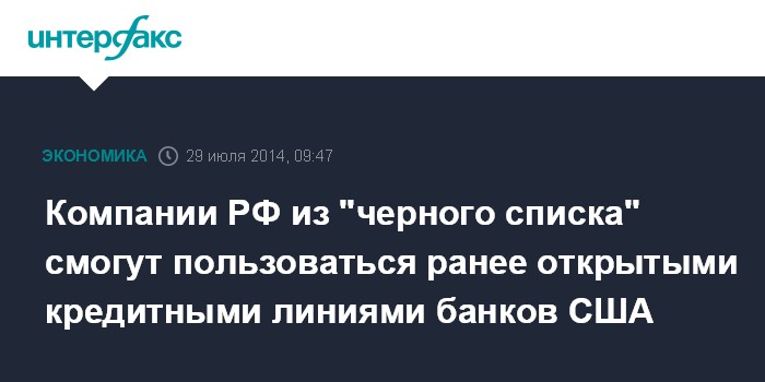 Компании РФ из "черного списка" смогут пользоваться ранее открытыми кредитными линиями банков США