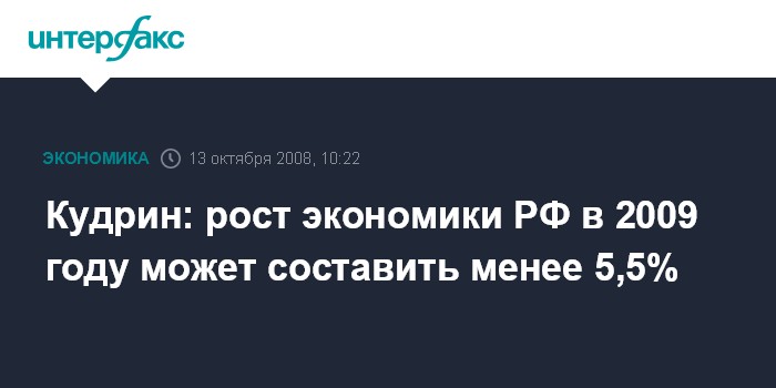 Кудрин: рост экономики РФ в 2009 году может составить менее 5,5%