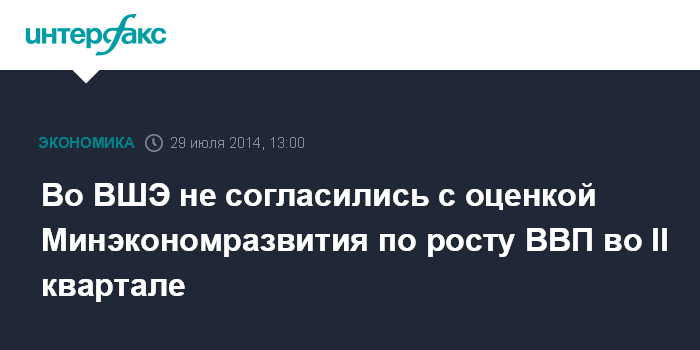 Москва. 29 июля. INTERFAX.RU - Во ВШЭ не согласны с оценкой Минэкономразвития по росту ВВП РФ во II квартале, допуская начало рецессии