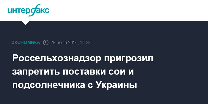 Россельхознадзор пригрозил запретить поставки сои и подсолнечника с Украины