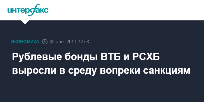 Рублевые бонды ВТБ и РСХБ выросли в среду вопреки санкциям