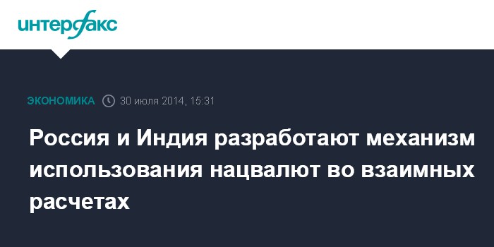 Москва. 30 июля. INTERFAX.RU - Россия и Индия создают рабочую группу по разработке механизма использования национальных валют во взаимных расчетах, сообщил ЦБ РФ по итогам встречи первого зампреда Банка России Ксении Юдаевой и исполнительного директора Резервного банка Индии Говиндараждана Падманабхана.