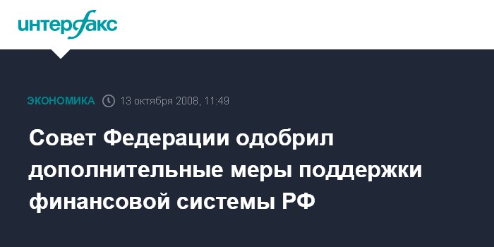 Москва. 13 октября. INTERFAX.RU - Совет Федерации на внеочередном заседании в понедельник одобрил закон "О дополнительных мерах поддержки финансовой системы РФ".