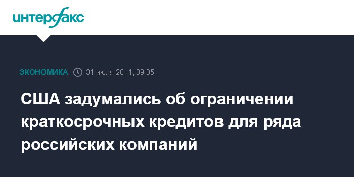 Москва. 31 июля. INTERFAX.RU – США могут запретить предоставление краткосрочных кредитов компаниям РФ, включенным в санкционный список, а также торговлю производными инструментами, если будет принято решение о дальнейшем ужесточении санкций в отношении России, сообщает агентство Bloomberg.