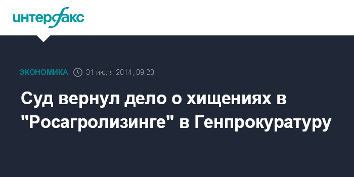 Суд вернул дело о хищениях в "Росагролизинге" в Генпрокуратуру