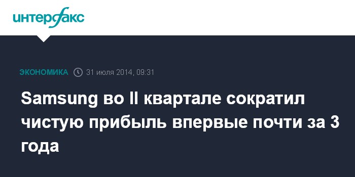 Samsung во II квартале сократил чистую прибыль впервые почти за 3 года