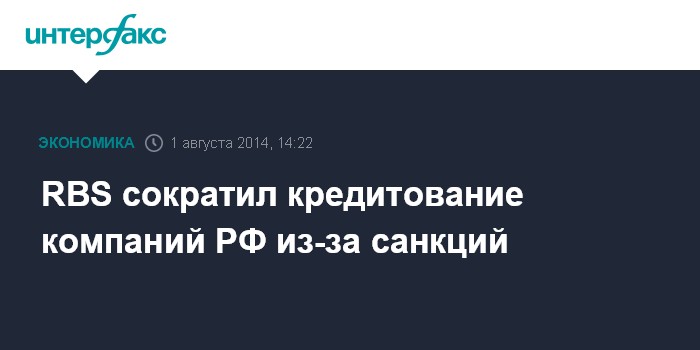 Москва. 1 августа. INTERFAX.RU – Royal Bank of Scotland Group Plc (RBS) наряду с другими европейскими банками сокращает объемы кредитования российских компаний в соответствии с новыми санкциями, введенными против России, сообщает агентство Bloomberg.