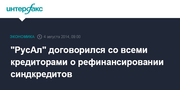 "РусАл" договорился со всеми кредиторами о рефинансировании синдкредитов