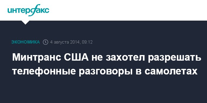 Москва. 4 августа. INTERFAX.RU - Министерство транспорта США готовит финальное решение в отношении права пассажиров говорить по телефону во время авиаперелетов и склоняется к тому, чтобы запретить такую возможность, пишет The Wall Street Journal.