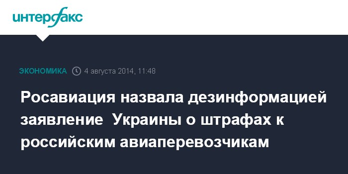 Москва. 4 августа. INTERFAX.RU - Заявление Госавиаслужбы Украины о правомерности штрафных санкций в отношении российских авиакомпаний, выполняющих полеты в российский аэропорт Симферополь, является недостоверной информацией, сообщила Росавиация.