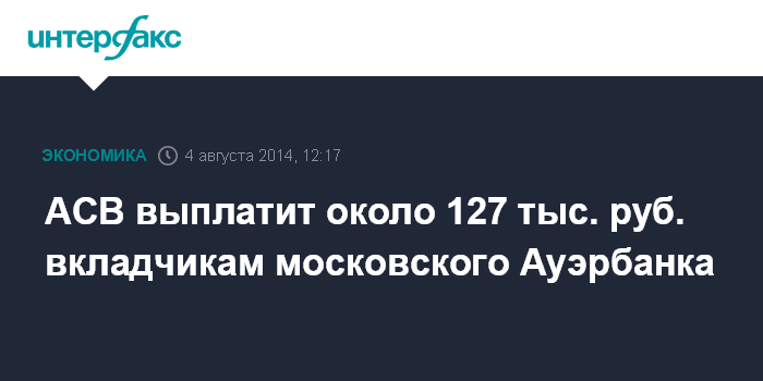 АСВ выплатит около 127 тыс. руб. вкладчикам московского Ауэрбанка