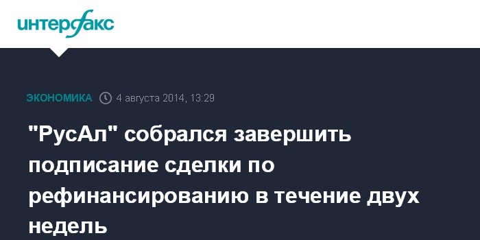 "РусАл" собрался завершить подписание сделки по рефинансированию в течение двух недель