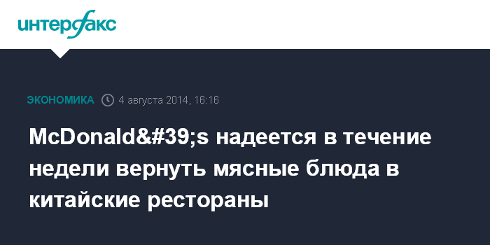 McDonald's надеется в течение недели вернуть мясные блюда в китайские рестораны