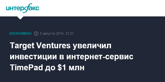 Москва. 5 августа. INTERFAX.RU - Венчурный фонд Target Ventures увеличил до $1 млн объем своих инвестиций в интернет-сервис TimePad, предназначенный для организации мероприятий (рассылка анонсов, сбор участников, запуск продажи билетов), говорится в сообщении TimePad.