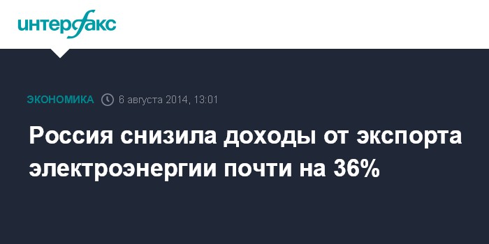 Как ранее сообщал "Интерфакс", по данным Fingrid, поставки электроэнергии из РФ в Финляндию (один из основных покупателей российской электроэнергии) в январе-июне 2014 года составили 1,3 млрд кВт.ч против 2,7 млрд кВт.ч, поставленных за аналогичный период 2013 года. Таким образом, они сократились более чем в два раза.