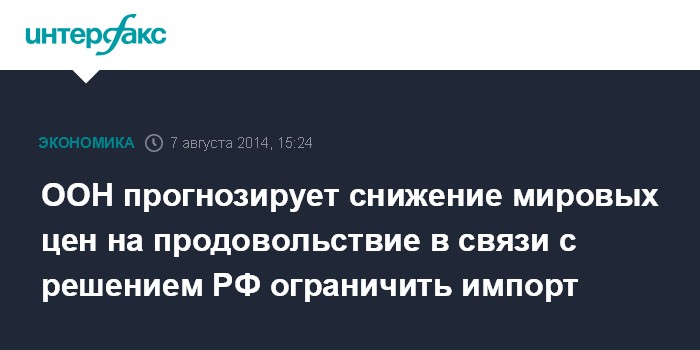 ООН прогнозирует снижение мировых цен на продовольствие в связи с решением РФ ограничить импорт
