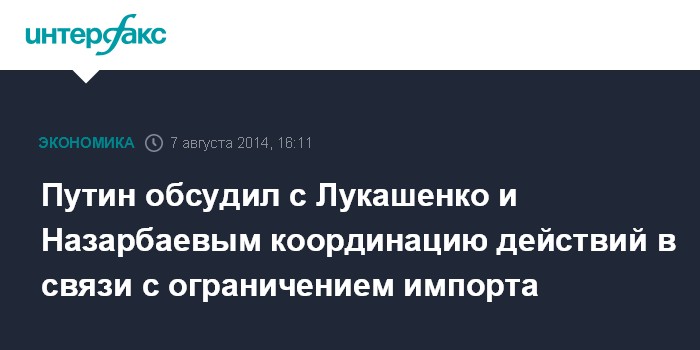 Путин обсудил с Лукашенко и Назарбаевым координацию действий в связи с ограничением импорта