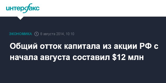 Общий отток капитала из акции РФ с начала августа составил $12 млн
