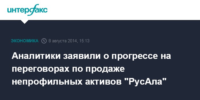 Москва. 8 августа. INTERFAX.RU - Переговоры по продаже непрофильных активов ОК "РусАл" находятся на продвинутой стадии, говорится в сообщении БКС по итогам встречи с представителями компании.