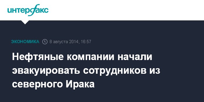 Западные СМИ отмечают, что акции нефтяных компаний, торгующиеся в Лондоне, падают в цене уже второй день подряд из-за все большей вероятности приостановки нефтедобычи и эвакуации персонала из северных районов Ирака. В числе компаний, объявивших о частичной эвакуации сотрудников, значатся Genel Energy, Gulf Keystone Petroleum, Chevron, Exxon Mobil.