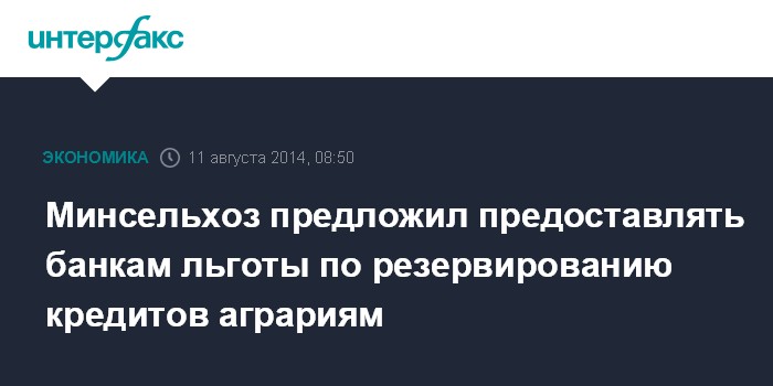 По данным "Коммерсанта", предложения Минсельхоза были направлены заинтересованным ведомствам (Минэкономики, Минфину, Банку России), а также крупнейшим банкам-кредиторам АПК - Сбербанку и Россельхозбанку.