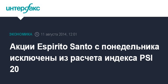 Акции Espirito Santo с понедельника исключены из расчета индекса PSI 20