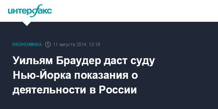 Уильям Браудер даст суду Нью-Йорка показания о деятельности в России
