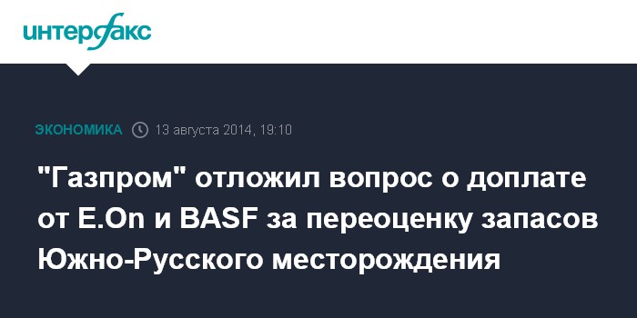 "Газпром" отложил вопрос о доплате от E.On и BASF за переоценку запасов Южно-Русского месторождения