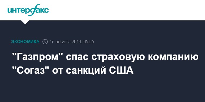"Газпром" спас страховую компанию "Согаз" от санкций США