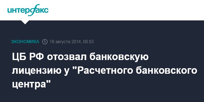 ЦБ РФ отозвал банковскую лицензию у "Расчетного банковского центра"