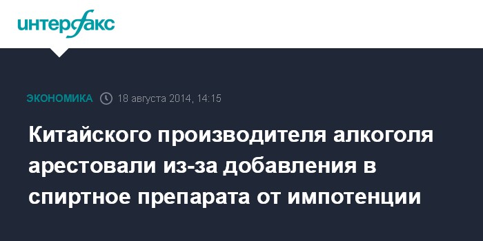 Москва. 18 августа. INTERFAX.RU - Основатель китайского производителя крепких спиртных напитков Nine Springs Ecological Agriculture Development Co. арестован из-за добавления в алкоголь средства от эректильной дисфункции, аналога Viagra, втайне от клиентов, передает MarketWatch. В документах следствия указывается только фамилия нарушителя - Хуан.