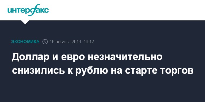 Москва. 19 августа. INTERFAX.RU - Доллар и евро незначительно снизились в начале торгов вторника на Московской бирже, рубль чуть вырос по отношению к бивалютной корзине в условиях улучшения настроя на рынках капитала.