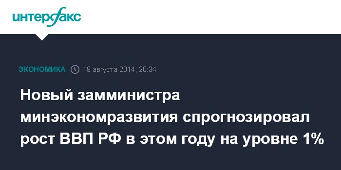 Новый замминистра минэкономразвития спрогнозировал рост ВВП РФ в этом году на уровне 1%