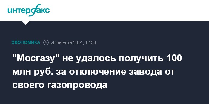 "Мосгазу" не удалось получить 100 млн руб. за отключение завода от своего газопровода