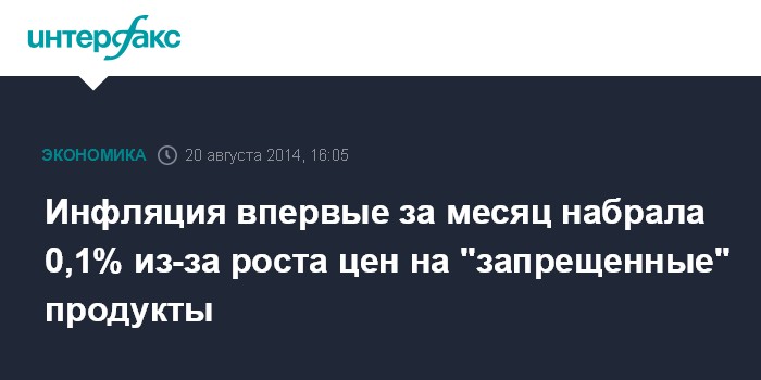 Предыдущие три недели Росстат фиксировал нулевой рост цен. Перед этим на протяжении семи недель инфляция составляла 0,1%. Исключением стала "тарифная неделя" (в начале июля), когда инфляция в результате индексации регулируемых тарифов прибавила 0,3%.