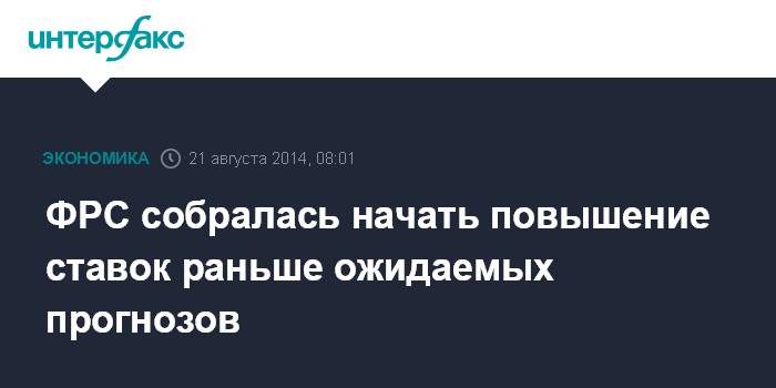 Заявления представителей Федрезерва и прогнозы аналитиков свидетельствуют о том, что первое повышение базовой ставки может произойти в 2015 году. Следующее заседание FOMC назначено на 16-17 сентября.