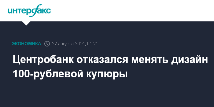 Центробанк отказался менять дизайн 100-рублевой купюры
