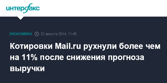Одновременно Mail.ru снизила прогноз роста выручки на 2014 год до 14-18% с 22-24%. При этом компания отметила, что строго контролирует издержки и намерена делать это и в будущем, поэтому прогноз по рентабельности EBITDA снижен незначительно - до 53% с 53-54%.