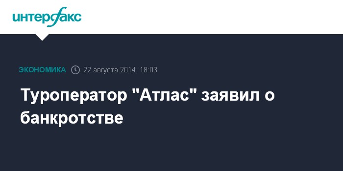 Москва. 22 августа. INTERFAX.RU - Туристический оператор "Атлас" приостановил деятельность. "Полчаса назад мы стали банкротами, путевки больше не продаются", - сообщили "Интерфаксу" в петербургском отделении компании в пятницу.