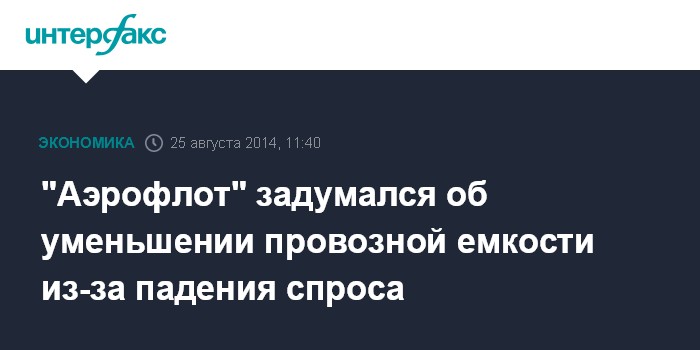 Москва. 25 августа. INTERFAX.RU - "Аэрофлот" около 2 месяцев назад начало фиксировать падение спроса на авиаперевозки, сообщил журналистам гендиректор компании Виталий Савельев в рамках молодежного форума "Селигер".