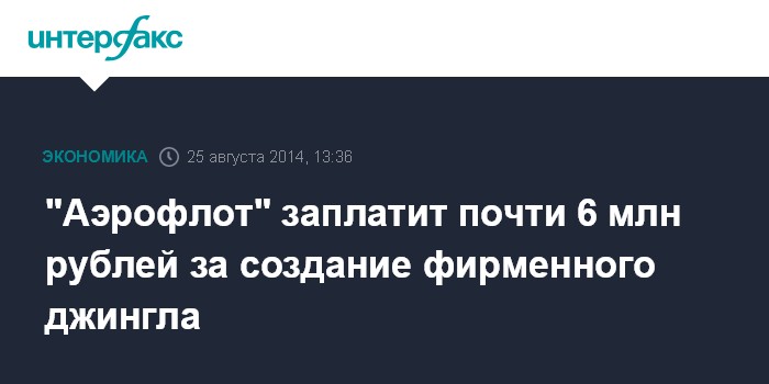 "Аэрофлот" заплатит почти 6 млн рублей за создание фирменного джингла
