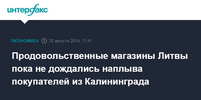 Москва. 25 августа. INTERFAX.RU - В Литве не оправдались надежды торговых сетей, что жители Калининградской области массово поедут к ним за едой после введения Россией запрета на импорт некоторых продуктов, передают литовские СМИ.