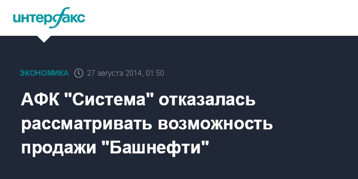 АФК "Система" отказалась рассматривать возможность продажи "Башнефти"