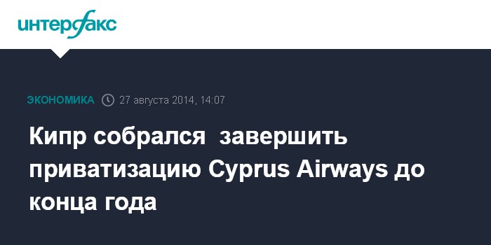 Москва. 27 августа. INTERFAX.RU - Кипр планирует завершить приватизацию Cyprus Airways до конца 2014 года, заявил председатель совета директоров авиакомпании Тони Антониу.