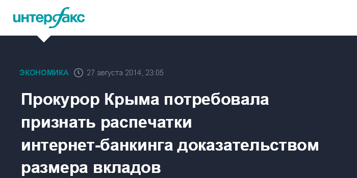 Прокурор Крыма потребовала признать распечатки интернет-банкинга доказательством размера вкладов