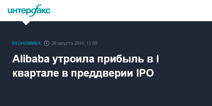 Москва. 28 августа. INTERFAX.RU - Китайский гигант интернет-торговли Alibaba Group Holding Ltd., который готовится к первичному публичному размещению акций в Нью-Йорке, увеличил прибыль в первом квартале 2014-2015 финансового года почти втрое, поскольку рекламодатели повысили расходы на электронных платформах Tmall и Taobao.