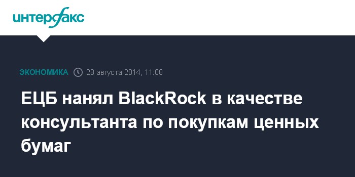 Москва. 28 августа. INTERFAX.RU - Европейский центральный банк (ЕЦБ) усилил подготовку к возможным новым мерам борьбы с дефляцией, назначив BlackRock консультантом по вопросу о потенциальных покупках ценных бумаг стран еврозоны, пишет Financial Times.