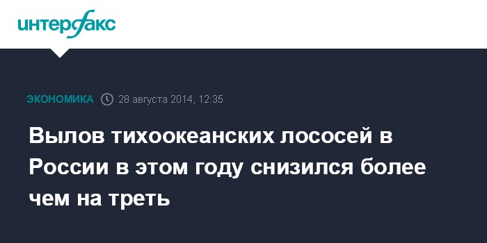 Москва. 28 августа. INTERFAX.RU - Вылов тихоокеанских лососей в России в этом году снизился более чем на треть, сообщило Росрыболовство по итогам штаба лососевой путины.