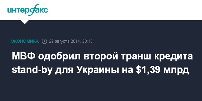 Москва. 29 августа. INTERFAX.RU - Совет директоров Международного валютного фонда (МВФ) в пятницу завершил первый пересмотр выполнения Украиной экономической программы, поддержанной кредитом stand-by, и одобрил выделение второго транша этого кредита в сумму SDR914,67 млн ($1,39 млрд), указано в сообщении Фонда.