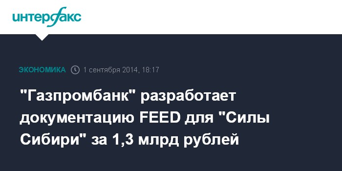 "Газпромбанк" разработает документацию FEED для "Силы Сибири" за 1,3 млрд рублей